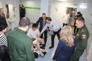 Визит состоялся в преддверии дня Защитника Отечества с благородной миссией: SKY GROUP подарила госпиталю инновационное кресло для находящихся там маломобильных военнослужащих.